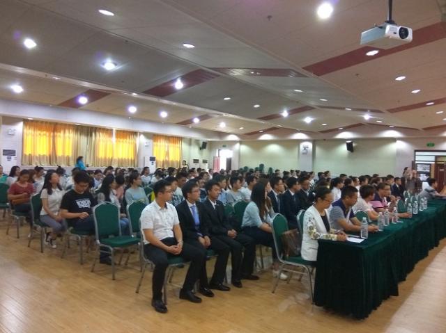 6月21日,beat365在线官网登录入口2016届毕业典礼在大学中区图书馆五楼学术报告厅举行。beat365在线官网登录入口副校长郑旭荣、学生处副处长苏维国、教务处长贾斌、大学团委副书记管欣、beat365在线官网登录入口学院党委书记蔡文伯、副院长张澜、党委副书记郑康、副院长王立新以及各系办教师代表齐聚典礼现场,与即将放飞梦想、扬帆起航的毕业生们共话离别情谊。典礼由党委副书记郑康主持。