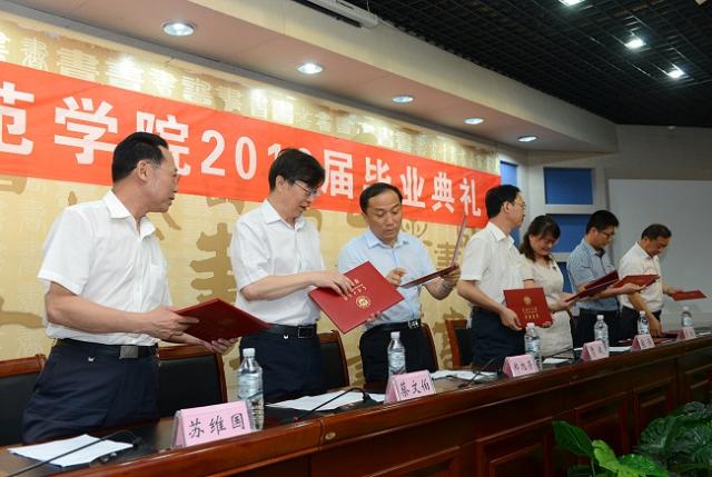 教育系赵红霞老师代表教师发言,对全体毕业生提出三点希望:一是坚守师范生的信念,发自内心的爱教育事业;二是继续学习,在学习和实践中充实自己,提升自己;三是勿忘初心,扎实教育事业。