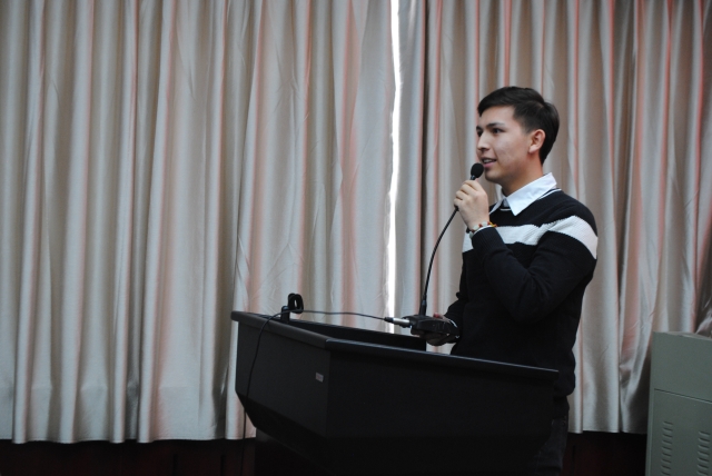 随着主持人吾尔亚提的开场词,演讲比赛也逐渐拉开序幕。决赛分为即兴演讲和主题演讲。共有19人参加决赛,他们将用深情言语抒发对祖国、对党的热爱,用一纸箴言诠释责任。青春就是活力的象征,每位选手的演讲都激情澎湃;青春是智慧的体现,睿智的话语感染了全场观众;青春更是勇气的化身,选手们为自己的青春立下豪言壮语。选手们精彩的演讲一点一点把比赛推向高潮。10号选手李田英同学,流利的脱稿演讲和睿智敏捷的思维深情诉说着自己成长的故事,深深打动了在座的观众,台下掌声不断。